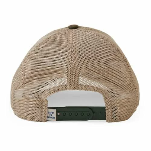 Six panel unstructured low-mid crown with six rows of stitching on brim and soft mesh on back